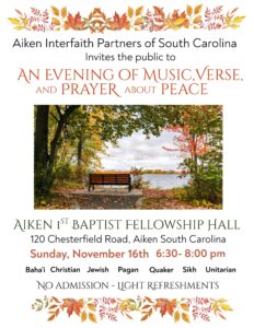 Join us as Sr. Pamela Smith of the Roman Catholic Diocese of Charleston and Dr. Jonathan Leader of Tree of Life Synagogue chat about how their religions are different and similar and the things they wish people understood about their faiths. 7:00 – 8:15 PM on Tuesday, November 18. Click to register for Zoom link. All are welcome!